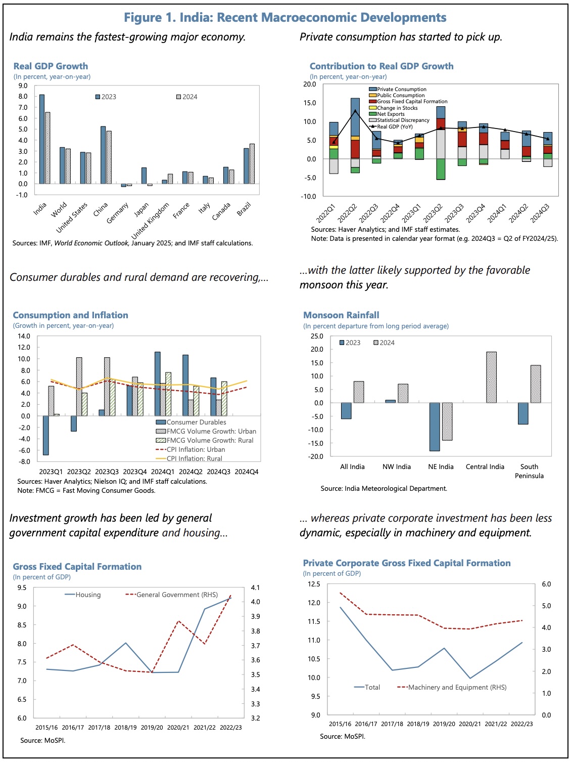 Growth has moderated somewhat to 6% YoY in H1 2024/25, with slower public capex ahead of the national elections. Private sector investment, notably investment in machinery and equipment has not matched expectations, although private consumption has increased with the more favourable monsoon.
