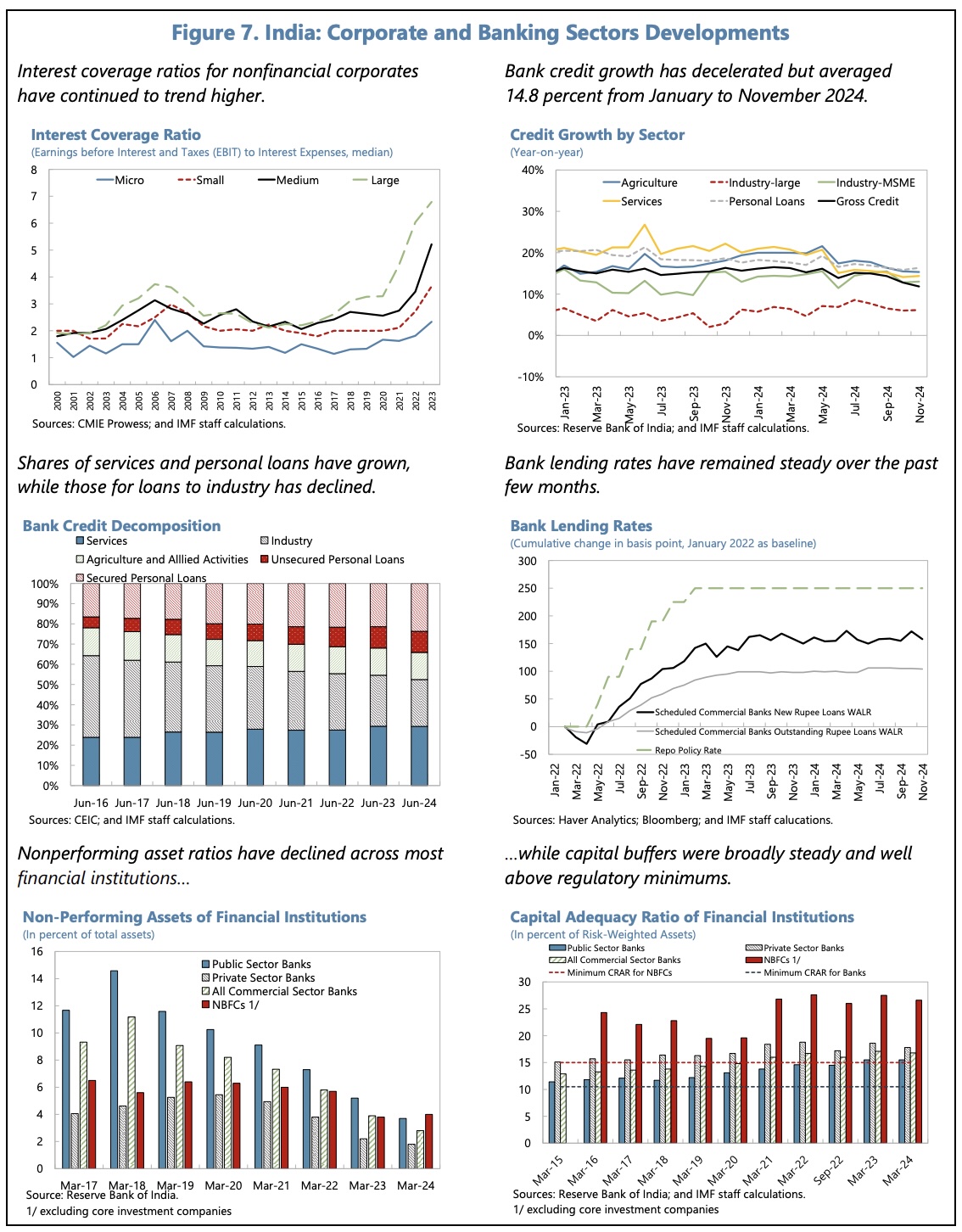 Sector risks are broadly contained, with banks’ gross NPLs at a multiyear low of 2.6% (September 2024), and capital buffers generally adequate. They are weaker at some public sector banks, select NBFCs and urban cooperative banks.