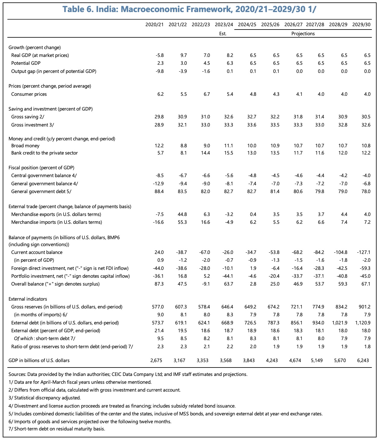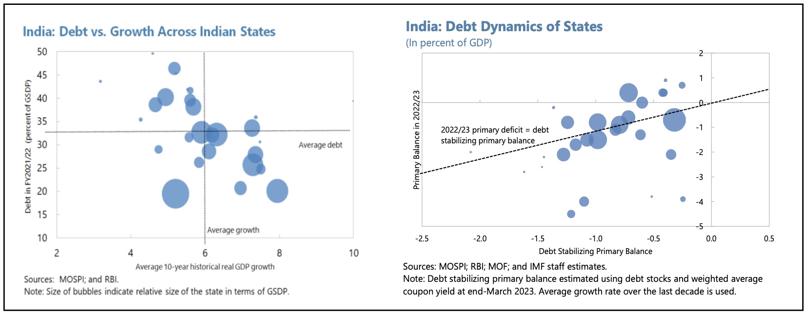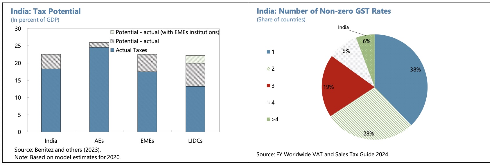 Risks of sovereign stress are seen as moderate, partly because a relatively high share of debt is denominated in rupees, with long duration, and the interest-growth differential is expected to remain favourable. (External debt was 18.7% GDP at the end of 2023/24.) Vulnerabilities are higher at the state level.