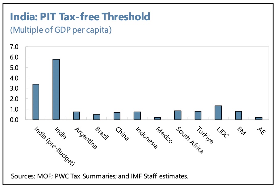 The IMF support a moderate contraction in the fiscal deficit, as the output gap has broadly closed and debt is elevated. They have cautioned against using high windfall gains from the central bank to finance permanently higher recurrent expenditure, and have encouraged the states to give greater weight to capital over recurrent spending. Although the increase in the personal income tax-free threshold announced in the budget has raised it significantly above peer country levels (from 3.5x to 6x per capita income), the IMF believe that improvements in tax administration and cuts in recurrent spending still hold out the prospect of a decline in the central government deficit to around 4.4% GDP in 2025/26. There is scope to raise revenue through GST simplification and reversing fuel excise cuts. Allowing domestic energy prices to reflect global prices would reduce support profitability in the power sector.